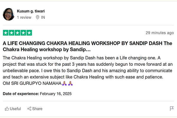 “Sandip is a great teacher of chakra and healing. I witnessed his teaching at Netrahat and was not only impressed but learnt from him.”